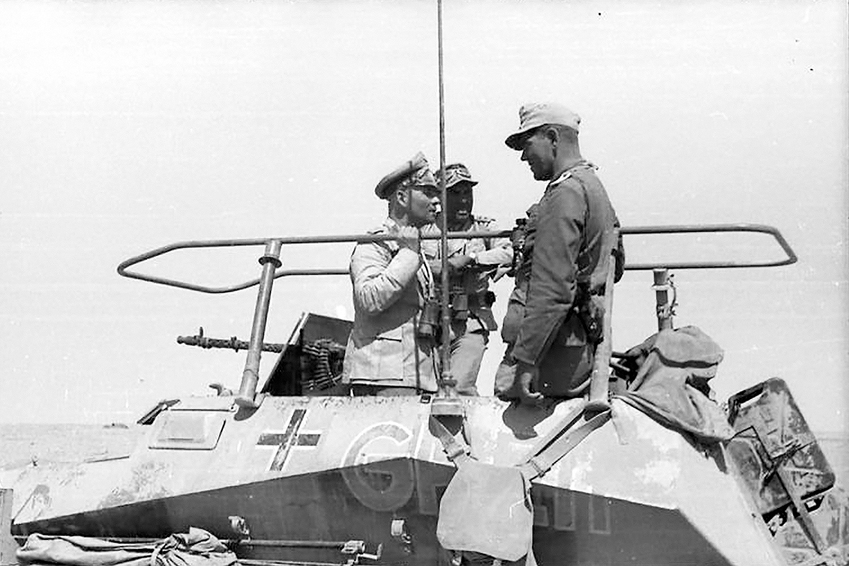 Erwin Rommel Field Marshal Erwin Rommel confers with General Fritz Bayerlein near Bir Hacheim in June 1942 (Bundesarchiv)
